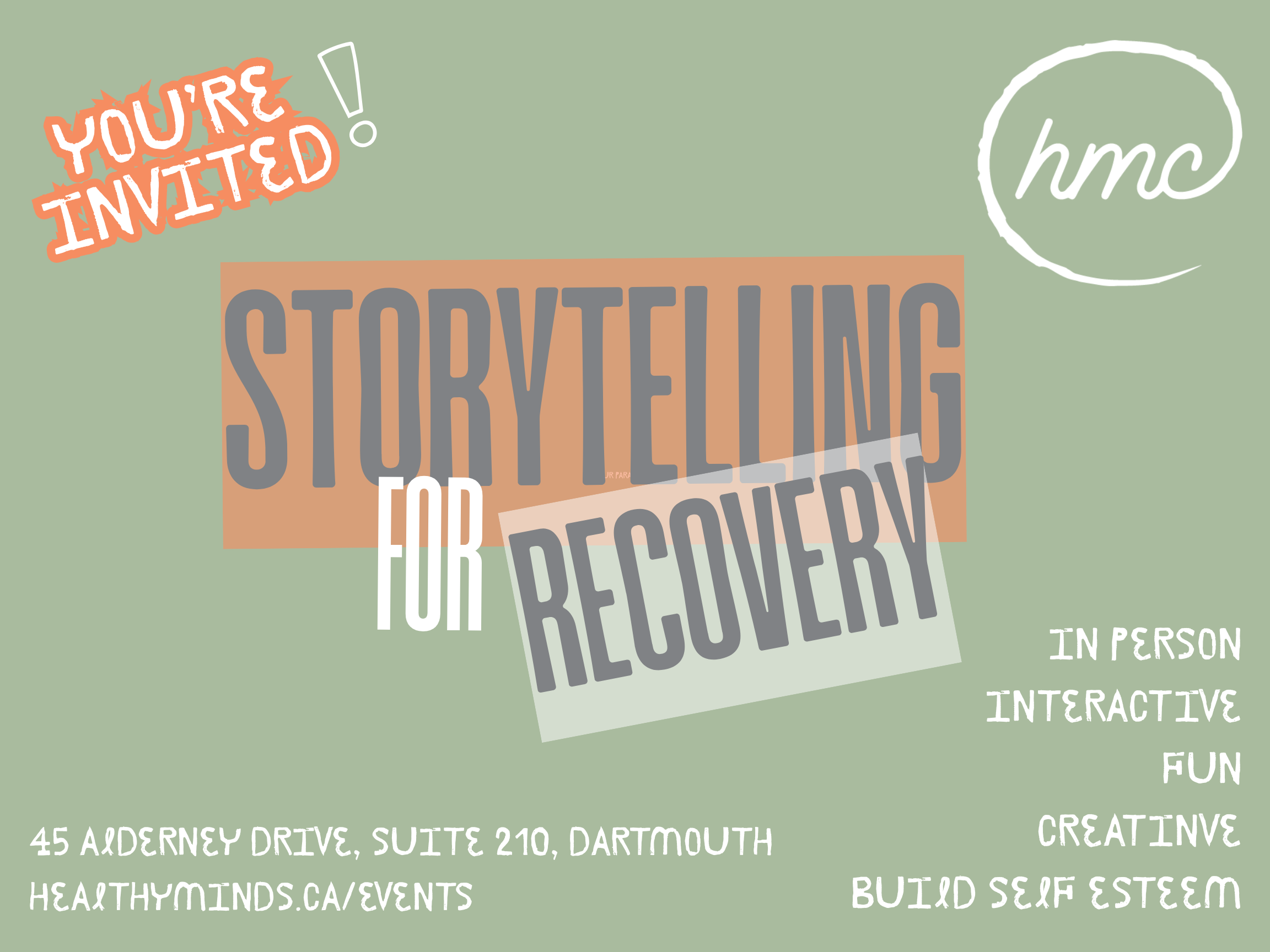 2:30 - 3:30pm | 45 Alderney Dr. Suite 210This is a casual, welcoming space to connect with others over coffee and snacks, talk about mental well-being, and know you’re not alone. You are welcome to speak about your own experiences, simply listen, or just be present — there is no pressure to share. Together, we work to reduce stigma, build understanding, and strengthen well-being.